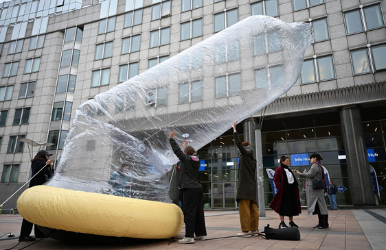 Direkt vor dem EU-Parlament - Darum steht da ein Riesen-Kondom