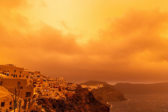 Auf Kreta sowie den Kykladeninseln Santorini, Naxos und Mykonos brachten starke Südwinde Saharastaub. Dieser färbte den Himmel rötlich und schränkte die Sicht deutlich ein. Meteorologen erwarten weiterhin kräftige Regenfälle, Gewitter und örtlich Hagel. Für Kreta gilt eine erhöhte Unwetterwarnung. Eine Entspannung wird erst für Freitagabend erwartet.