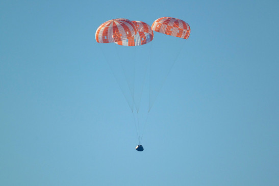 Die Landung war ein kompliziertes Manöver, bei dem die Kapsel zeitweise eine Geschwindigkeit von bis zu etwa 38.400 Kilometern pro Stunde erreichte, was den Astronauten extreme körperliche Belastungen aussetzt. Mit einem speziellen Schild wurde die Astronauten vor der extremen Hitze geschützt, der die Kapsel beim Wiedereintritt in die Erdatmosphäre ausgesetzt ist. Für rund sechs Minuten fiel dabei planmäßig die Kommunikation mit dem Kontrollzentrum aus. Mithilfe von Fallschirmen kam die Kapsel anschließend abgebremst im Pazifik auf.