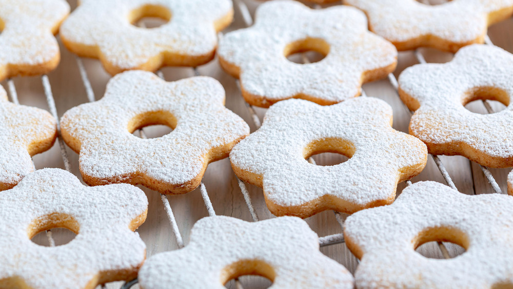Den Backofen auf 180 Grad Ober-/Unterhitze vorheizen und die Kekse ca. 20 Minuten backen. Danach mit Puderzucker bestäuben.