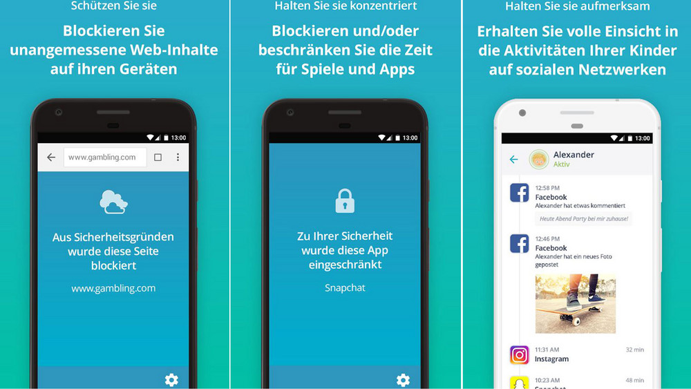 Es gibt einige Apps, die euch die Möglichkeit bieten, das Nutzungsverhalten eurer Kinder zu überwachen und zu regulieren. Ihr könnt praktisch bestimmte Apps sperren oder die Nutzung begrenzen. Außerdem habt ihr die Möglichkeit vorm Schlafengehen oder während der Hausaufgabenzeit, das Handy komplett zu sperren. Bestimmte Apps schützen sogar automatisch vor schädlichen Webinhalten und können den Standort eures Kindes überwachen, damit ihr seht, wo es sich herumtreibt.