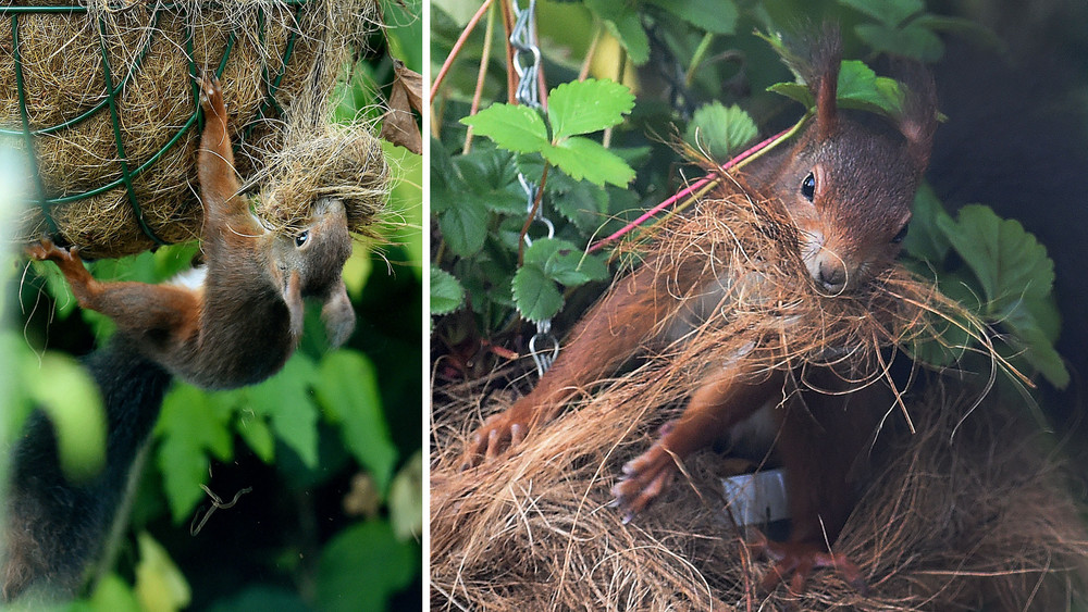 Haus? Nest? Mooooment! Klar, das was Eichhörnchen bauen, nennt sich Kobel. Weiß man als Eichhörnchen-Experte. Und es ist übrigens nicht so, dass Eichhörnchen nur einen Kobel bauen. Im Gegenteil: Weil sie nach dem Motto "Ich wohne, wo es Futter gibt", leben, kann ein Eichhörnchen schon mal bis zu acht Kobel haben. Praktisch: Wenn mal ein Kobel zerstört wird, gibt's direkt mehrere Backup-Kobel, wo das Eichhörnchen wohnen kann.