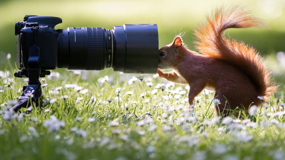 Der buschige Schwanz ist überaus viellseitig verwendbar. Mit ihm Schwanz kommunizieren Eichhörnchen auch! Wenn du demnächst eins siehst, das gerade seitlich mit dem Schwanz wedelt und dazu mit den Pfoten auf den Boden stampft heißt das: Das ist gerade nervös, das Hörnchen! Und wenn es den Schwanz nach oben aufrollt und der zittert, dann bist du besser vorsichtig. Dann ist das Eichhörnchen nämlich wütend – und macht dann auch noch Schnalz-Geräusche dazu.