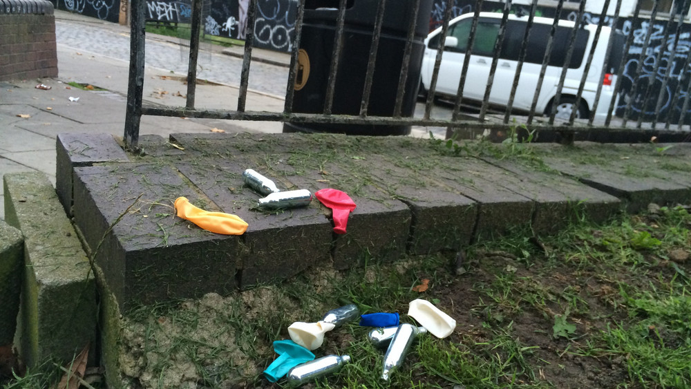 Eine beliebte aber gefährliche Partydroge unter Teenagern: Die Ballons werden oft an öffentlichen Plätzen aufgeblasen und inhaliert