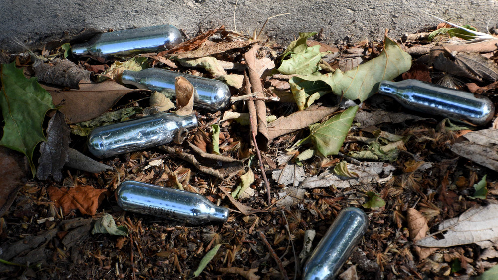 In vielen hessischen Städten macht sich der Lachgas-Trend auch optisch immer mehr bemerkbar und wird zum Müllproblem. "Vor eineinhalb Jahren hat es ganz vereinzelt angefangen" sagt Stefan Röttele, Sprecher der Frankfurter Entsorgungsbetriebe (FES). "Es waren einzelne Kartuschen, die wir im öffentlichen Raum gefunden haben. Inzwischen sind es jedes Wochenende mehrere Dutzend." Vor allem in den Frankfurter Partyzonen wie die Zeil, das Bahnhofsviertel, Alt-Sachsenhausen und viele Grünflächen nehmen Lachgas-Überreste zu.