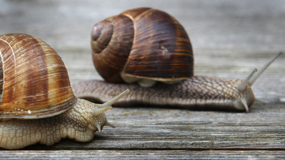Weinbergschnecken sind unglaublich langsam und gemütlich unterwegs. Sie bewältigen etwa drei Meter pro Stunde – eben im Schneckentempo.