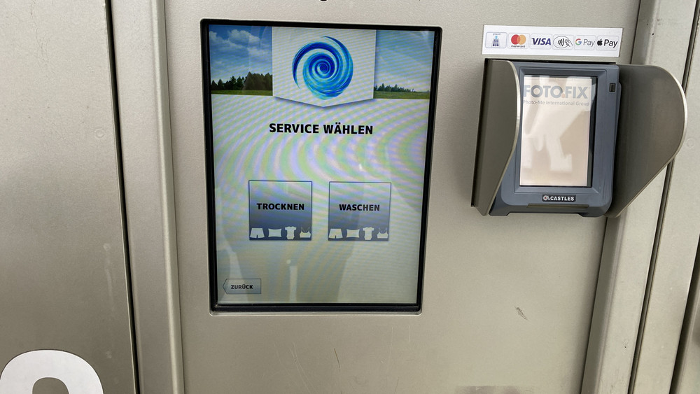 Große Waschstationen mit Waschmaschinen und Trockner stehen seit Kurzem auf Parkplätzen und Rasthöfen auch in Hessen, zum Beispiel auf dem Parkplatz vom Taunus Carré in Friedrichsdorf, am Emaillierwerk in Fulda, am Rastpark in Guxhagen oder in der Robert-Koch-Straße in Weiterstadt.