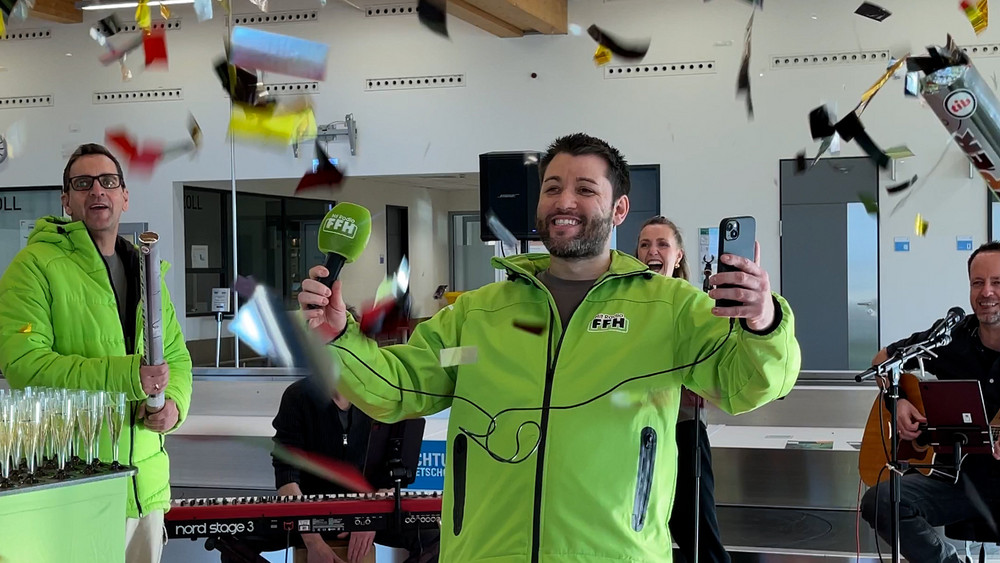 Der Kassel Airport ist nicht gerade der Hotspot für alle Fluggäste. Im März fliegt beispielsweise jede Woche nur ein Reiseflieger. Darum hat unser 'Guten Morgen Hessen'-Reporter Daniel Granitzny mit dem FFH Team für eine ordentliche Überraschungsparty gesorgt.