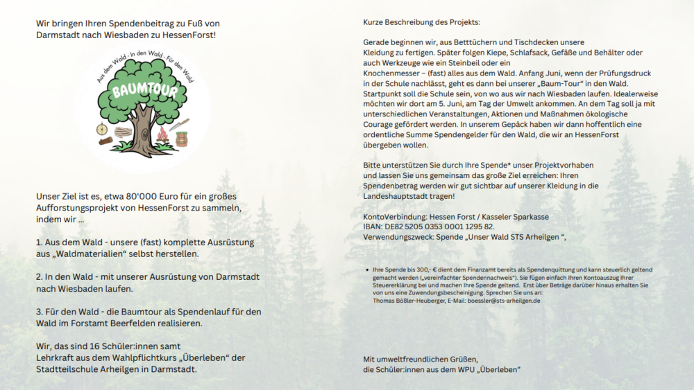 Verwendungszweck: Spende „Unser Wald STS Arheilgen“