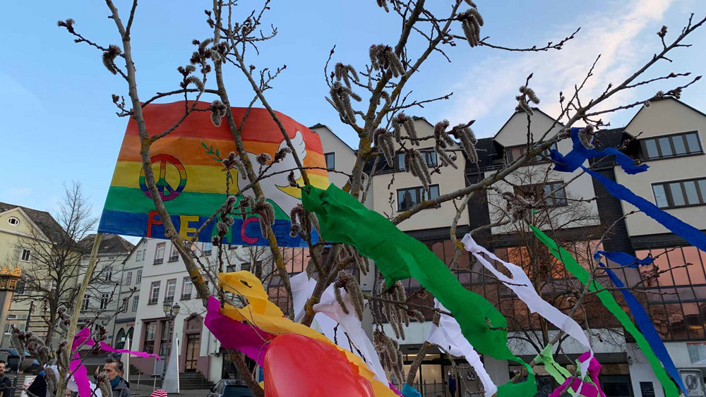 Jeden Sonntag um 17 Uhr kommen Kinder, Eltern und Großeltern zu einer Mahnwache auf den Wetzlarer Domplatz. Organisiert von einem Team der katholische Pfarrei St. Markus. Mit bunten Bändern, Plakaten und Straßenkreide demonstrieren die Kinder für Frieden in der Ukraine. Außerdem wird gesungen, gebetet und gebastelt. Auch Flüchtlingsfamilien aus der Ukraine nehmen teil und erzählen dort von ihren Erlebnissen. Mehr Info