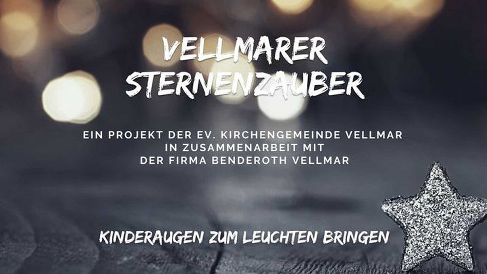 Benachteiligten Kindern zu Weihnachten etwas schenken – das ist das Ziel der Spendenaktion „Vellmarer Sternenzauber“. Dabei kooperiert die Kirchengemeinde mit dem örtlichen Spielwarengeschäft Benderoth. Die gesammelten Wünsche der Kinder werden dort im Laden ausgestellt und können von „Geschenkespendern“ erworben werden. Die Geschenke bleiben dann im Laden, sodass die beschenkten Kinder anonym bleiben. Vor Weihnachten fahren ehrenamtliche Helfer die Geschenke für die Kinder dann aus. Statt direkt ein Geschenk zu spenden, ist auch eine Geldspende möglich – von der dann ein Geschenk finanziert wird.