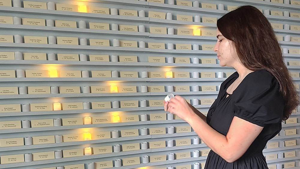 Hunderte Namensschilder auf kleinen Regalbrettern. Zwischen jedem Schild flackert eine kleine Gedenkkerze. Alle erzählen ein tragisches Schicksal. Unter den Namen findet sich die Altersangabe und Todesursache. Oft steht da: „Auschwitz“, „Riga“, oder „Buchenwald“. Zu sehen ist das in der Ausstellung „displaced at home“ im Kasseler Sara-Nussbaum-Zentrum. Sie zeigt mit Wandzitaten von Überlebenden oder großen Stadtplänen auf dem Boden: jüdisches Leben war vor dem 2. Weltkrieg in Kassel stark verbreitet. Den Abschluss der Ausstellung bilden Interviews mit ehemaligen jüdischen Einwohnern Kassels, die während des Holocausts geflohen sind und 2000 für die Einweihung der neuen Synagoge zurück nach Kassel kamen.