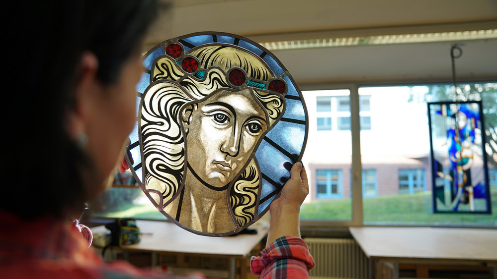 Glasmalerei ist echtes Handwerk, das sich in vielen Kirchen bewundern lässt. Dieses Handwerk kann man heute noch lernen – zum Beispiel an der Glasfachschule im mittelhessischen Hadamar. Dort unterrichtet Andrea Hebgen und arbeitet mit ihren Schülerinnen und Schülern besonders gerne an beschädigten Originalen. „Wenn eine Scherbe mitten aus dem Gesicht fehlt, sollte eine Glasmalerin fähig sein, das Segment ergänzen zu können“, sagt Hebgen. Eine besondere Herausforderung bei der Arbeit sei es, den Standpunkt zu bedenken. Denn Kirchenfenster sind später einige Meter von der betrachtenden Person entfernt.