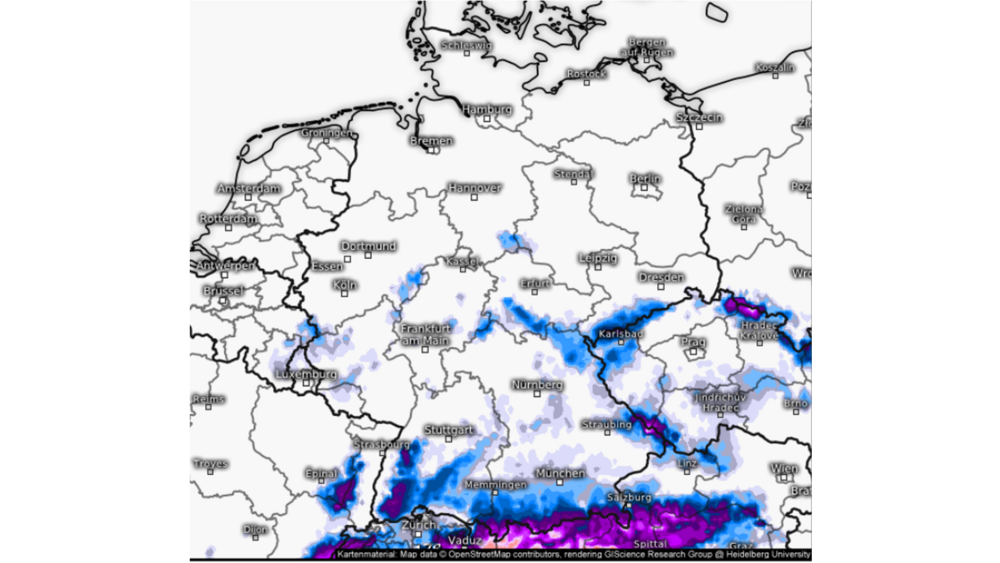 Eine kleine Hoffnung auf Schnee gibt es allerdings noch. Denn die Weihnachtswoche startet mit winterlichen Temperaturen und einem Tiefdruckgebiet. In den höheren Lagen, sprich auf der Wasserkuppe, dem Vogelsberg oder dem großem Feldberg scheint es zum Wochenbeginn. Weiter unten wird der meiste Schnee bis Heiligabend allerdings geschmolzen sein, sodass auf den Gipfeln allenfalls noch ein bisschen Schnee bleibt.